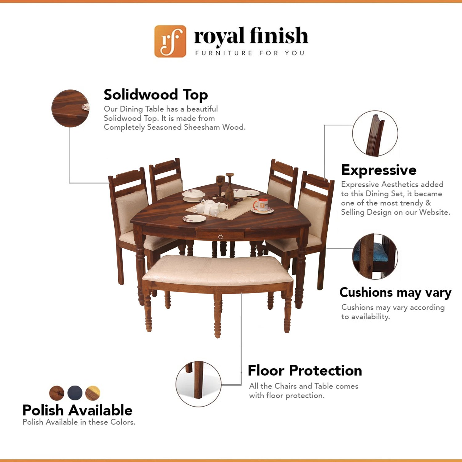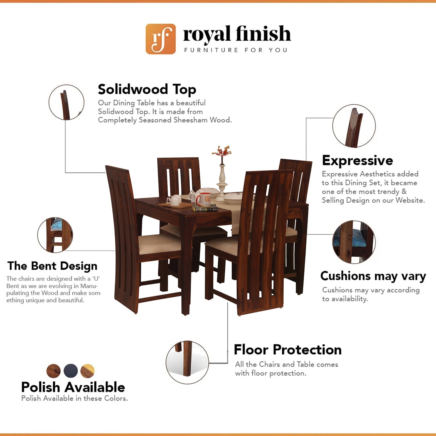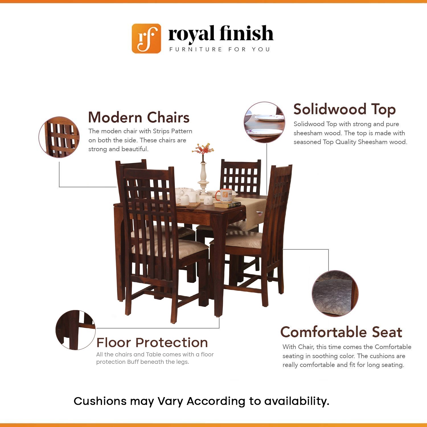 - Support: We provide pre-sell and after-sell support services On Mobile, Email, and WhatsApp. Customers can contact during Working hours on +919462682335 for Mobile and WhatsApp and For Email: royalfinishfurniture@gmail.com