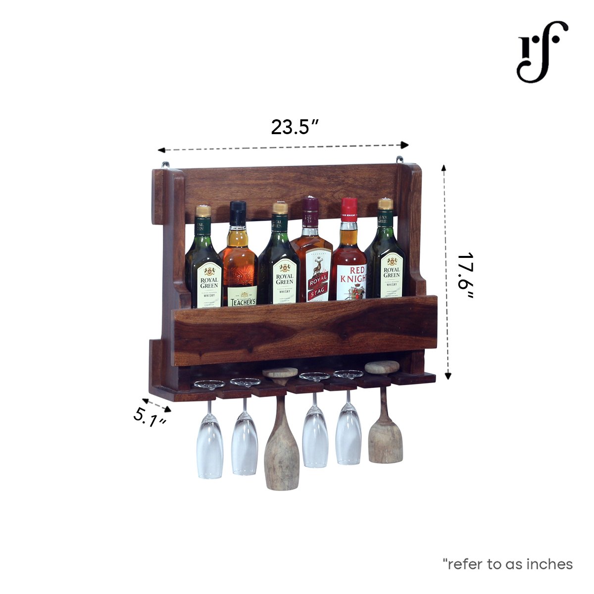 - Mini Bar Size: Top Length : 23.5 IN(60 CM),Top Deep – 5.4 IN(14 CM), Height:20 IN(51 CM),Bottle Space Length : 20.6 IN(52.5 CM),Bottle Space deep – 3.2 IN(8.5 CM), Glass Space: 6