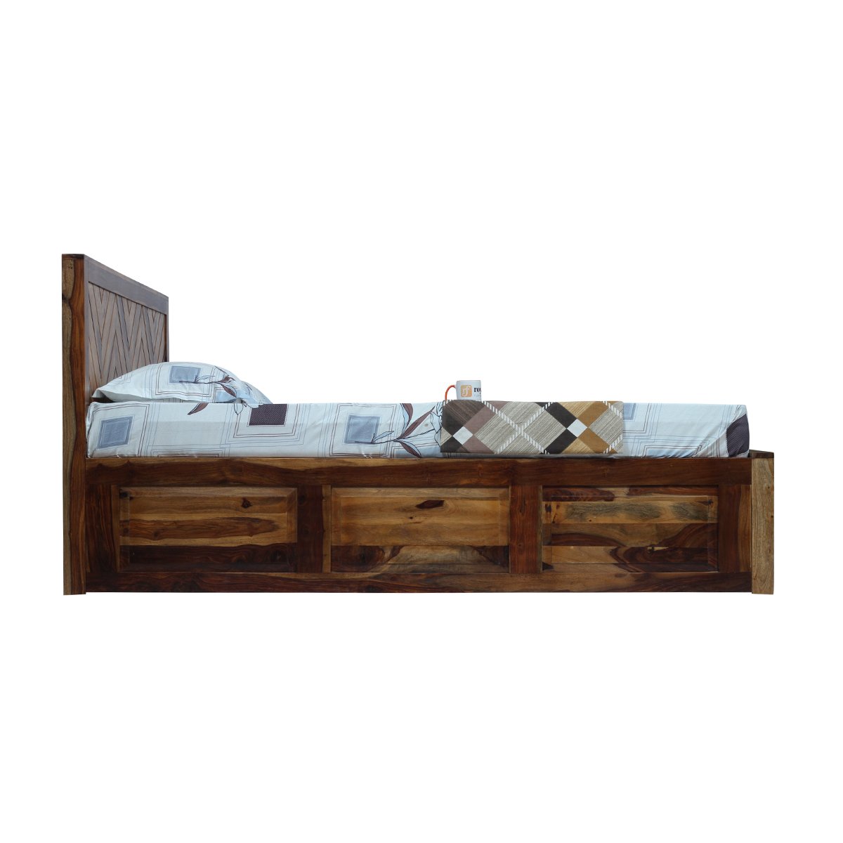 • Bed Material: Solid Wood – Premium Quality Furniture Sheesham Wood, Box Cover: Box Upper Cover comes to 18 MM in plywood or MDF(Depend on Customer Requirement). Box Lower Floor comes to 12 MM in plywood or MDF(Depend on Customer Requirement)