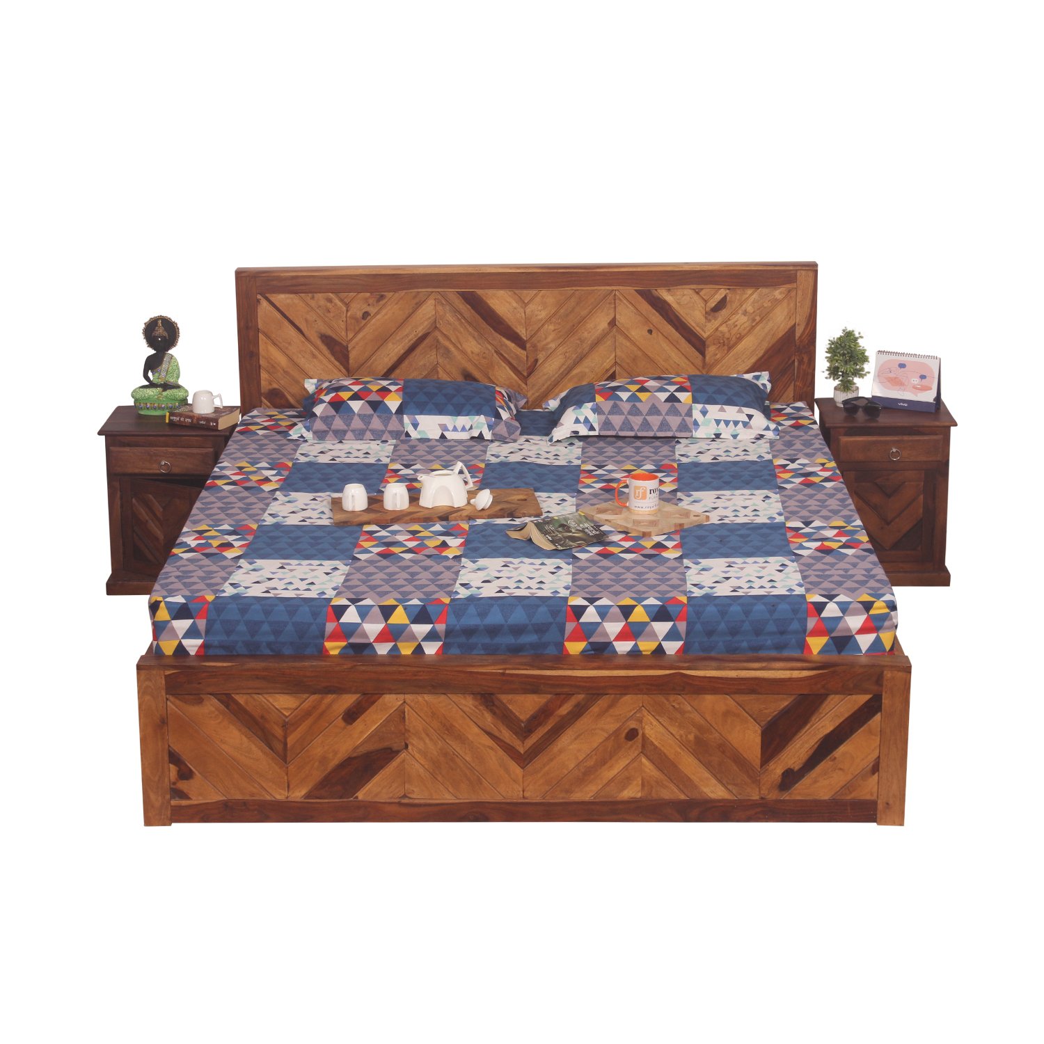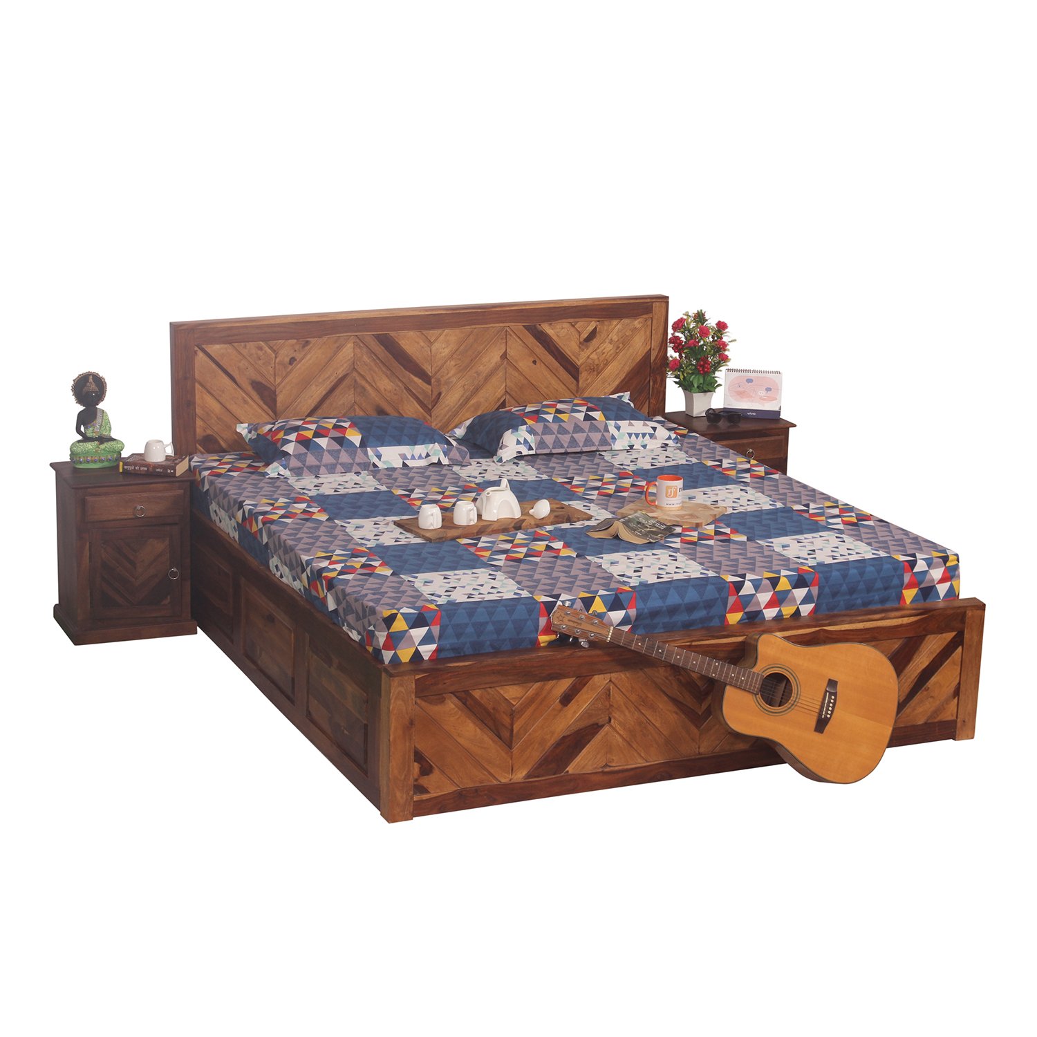 Thecsr Vesto King Without Storage Bed In Solid Sheesham Wood
